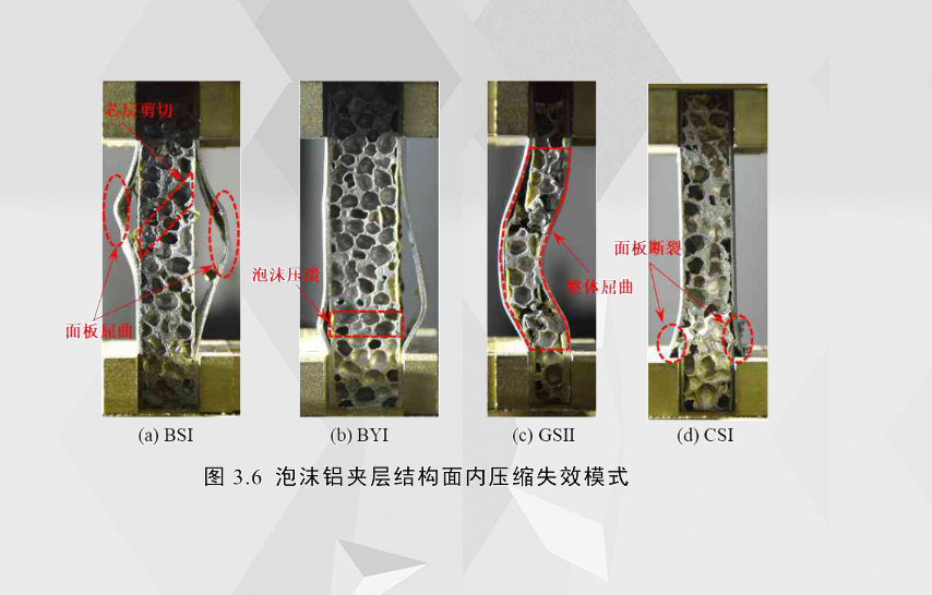 表3.1 泡沫铝夹层结构面内压缩失效模式及耐撞性指标